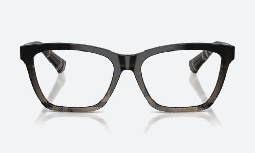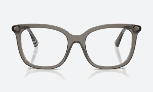 Burberry BE2430 frames in transparent grey acetate exude modern elegance. These medium-sized square optical frames for women reflect Burberry’s luxury craftsmanship and a versatile design suited for any occasion.