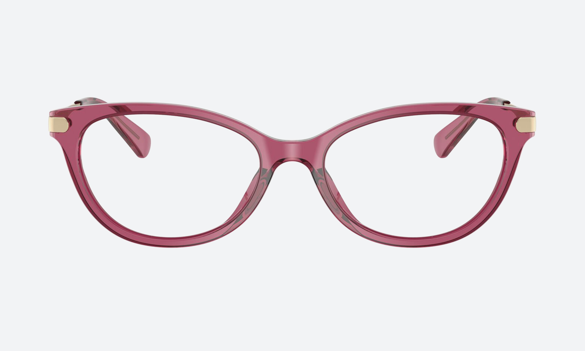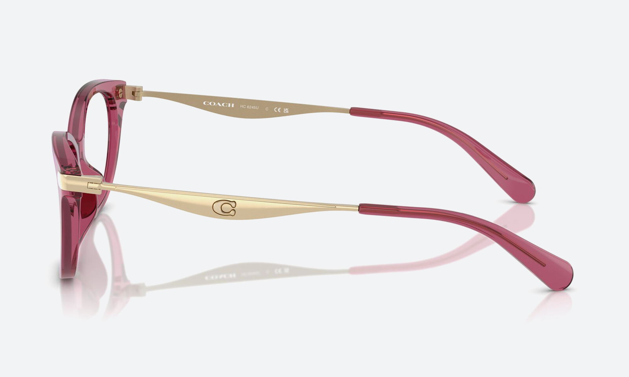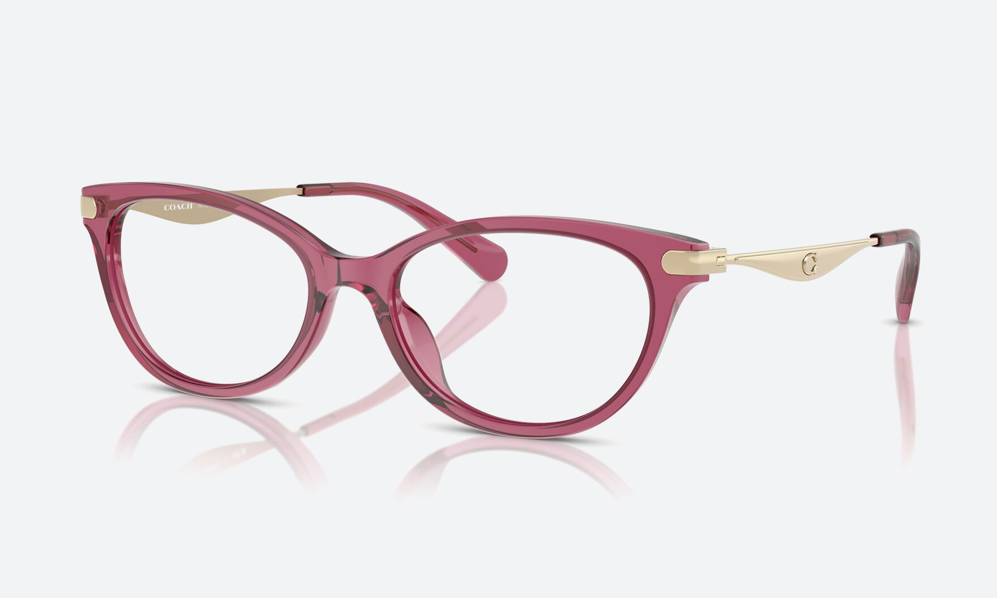 Coach HC6245U transparent maroon acetate frames feature a full-rim oval design—medium fit, lightweight, and stylish eyewear that adds vibrant, refined luxury to any ensemble.