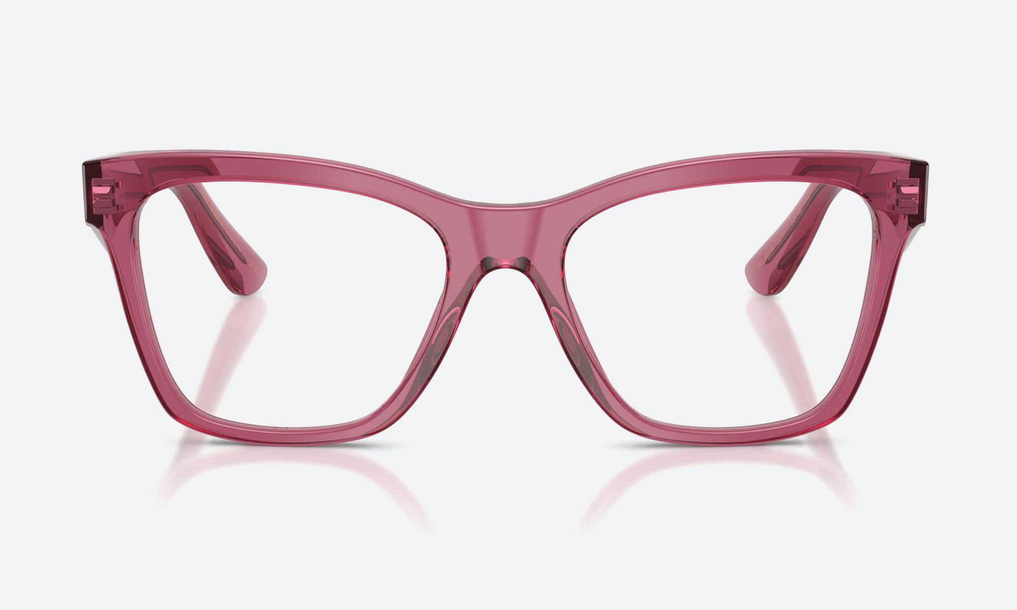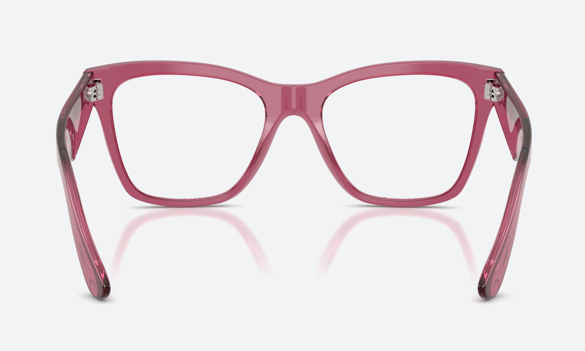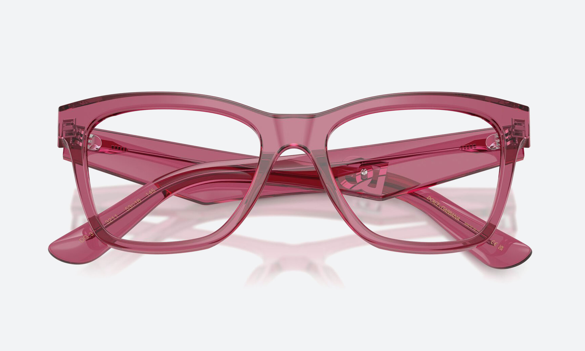 Experience refined luxury with Dolce & Gabbana DG3374 spectacle frames. Crafted from transparent maroon acetate, these medium-sized, full-rim square frames offer a contemporary aesthetic with a touch of bold elegance. Tailored for women who appreciate exquisite design, these frames effortlessly enhance any ensemble, from professional attire to chic casual looks.