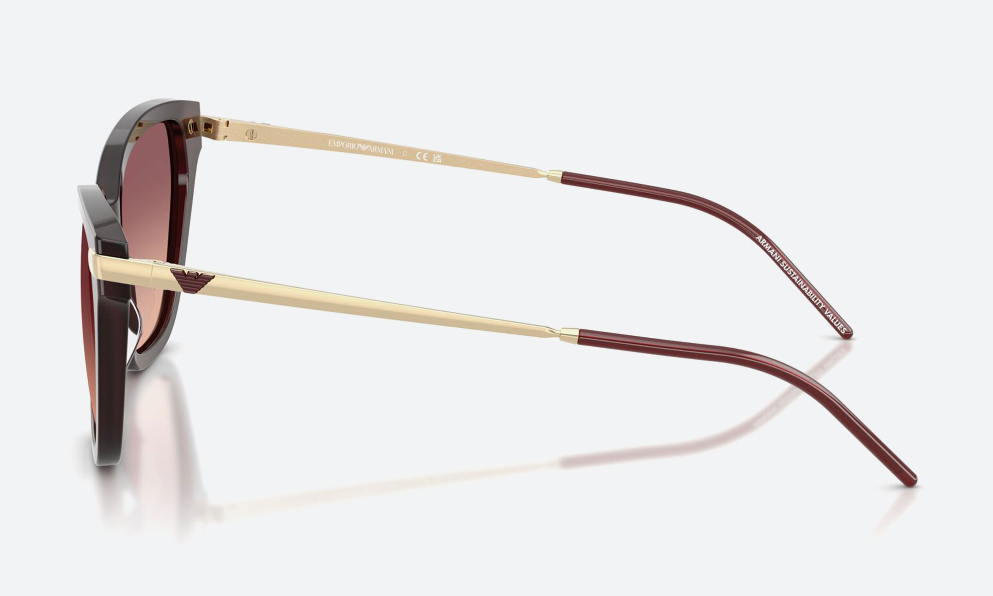 Add a touch of elegance with Emporio Armani EA4251 sunglasses. Featuring maroon acetate cat-eye frames, polished pink gradient lenses, and UV protection, these medium-sized sunglasses are perfect for a feminine, stylish look.