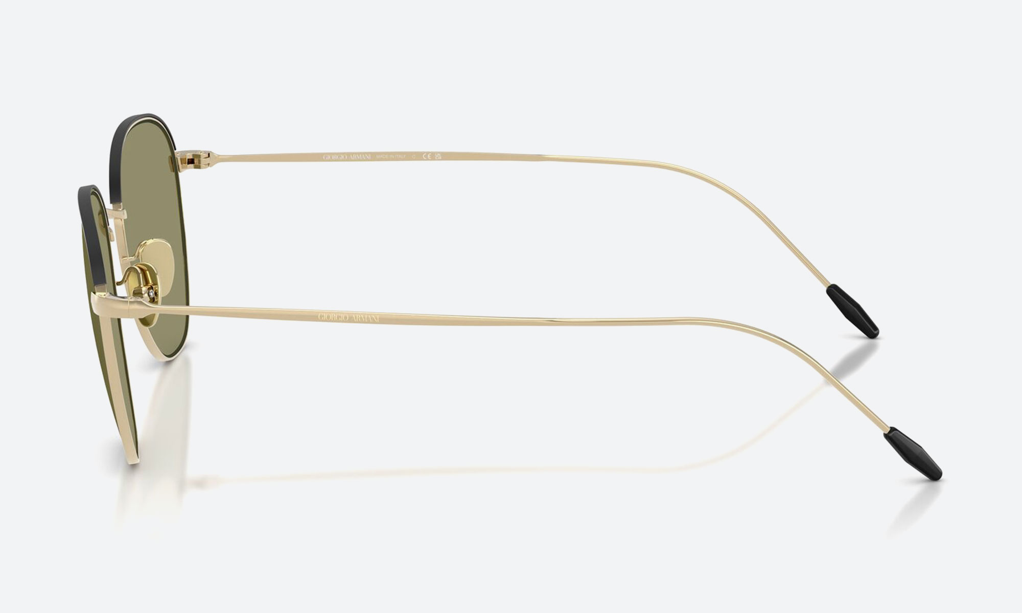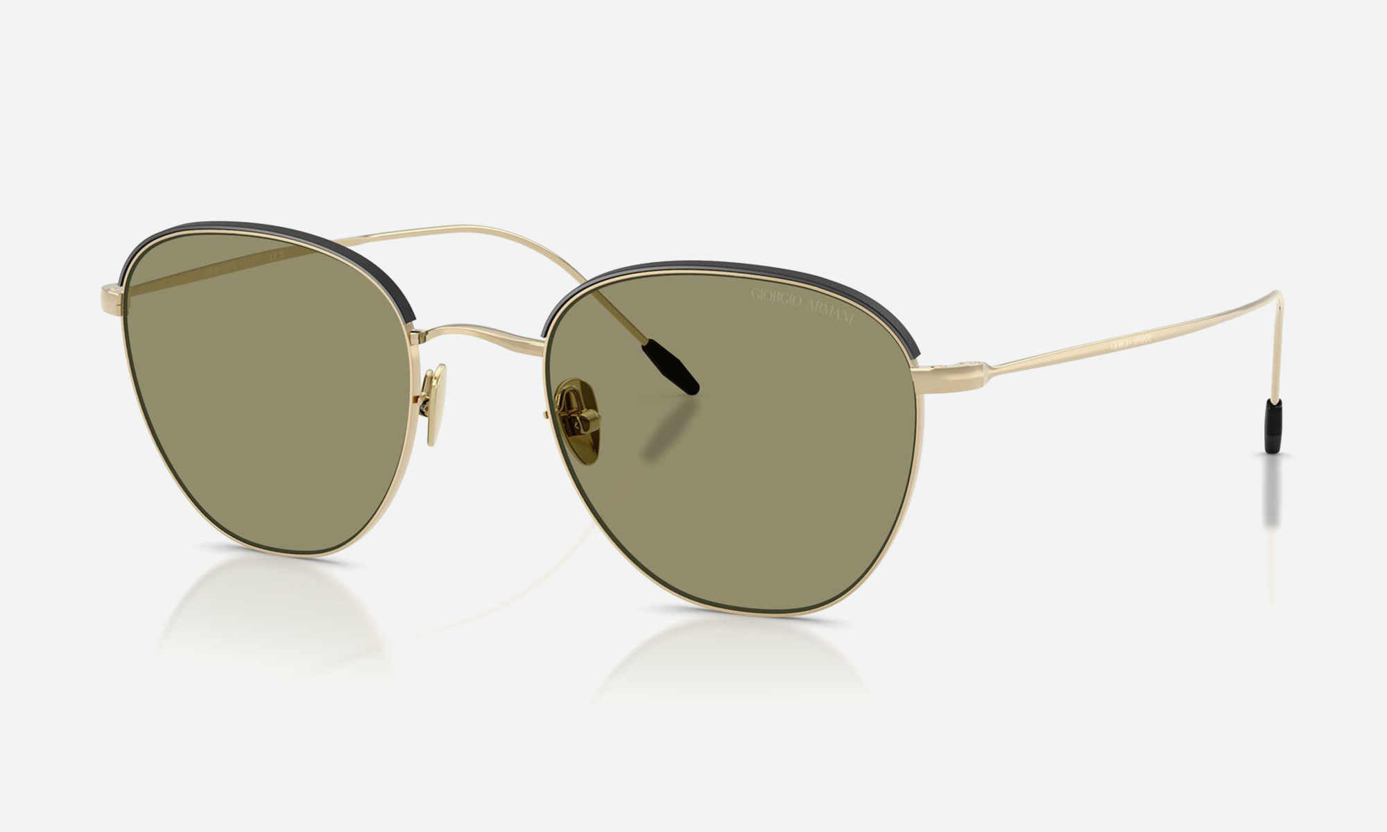 Elevate your look with Giorgio Armani AR6048 sunglasses. Featuring gold metal frames with rounded edges, green solid UV-protected lenses, and a two-tone design, these unisex sunglasses exude modern sophistication.