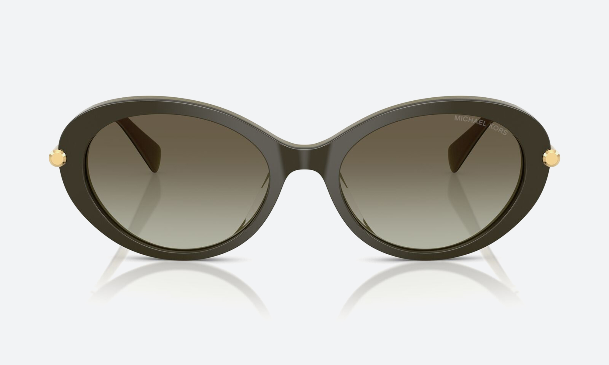 Michael Kors MK2245U sunglasses showcase a polished green acetate oval frame paired with matching green gradient UV-protected lenses, offering a fresh and sophisticated accessory for modern, style-conscious women.