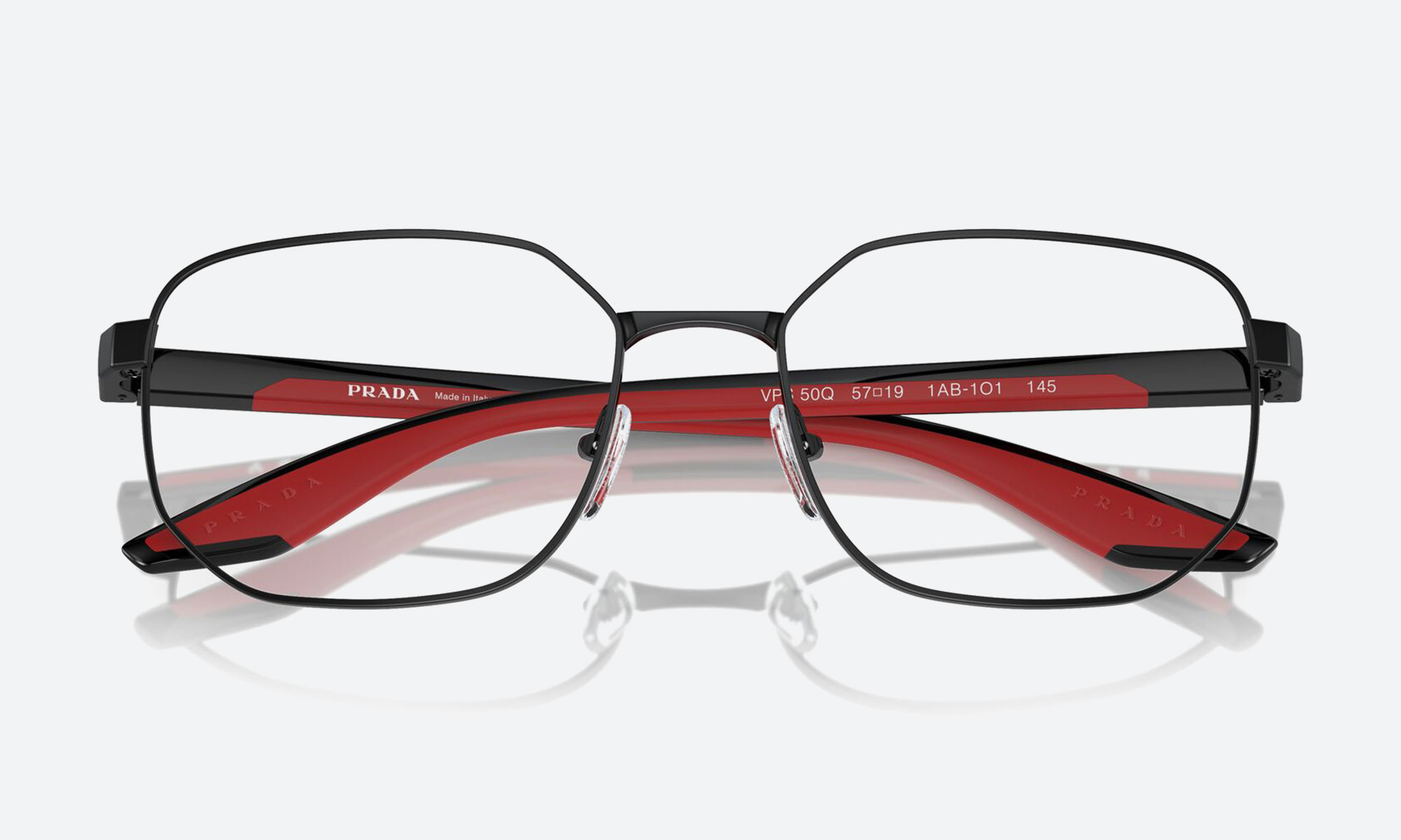 Elevate your style with Prada PS 50QV 1AB1O1. This large, black polished metal geometric frame offers bold sophistication and unisex appeal, making it a striking choice for contemporary luxury eyewear.