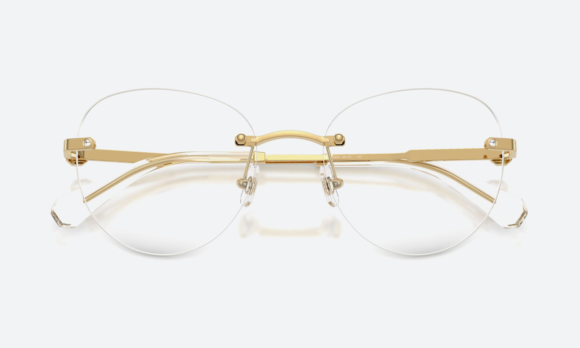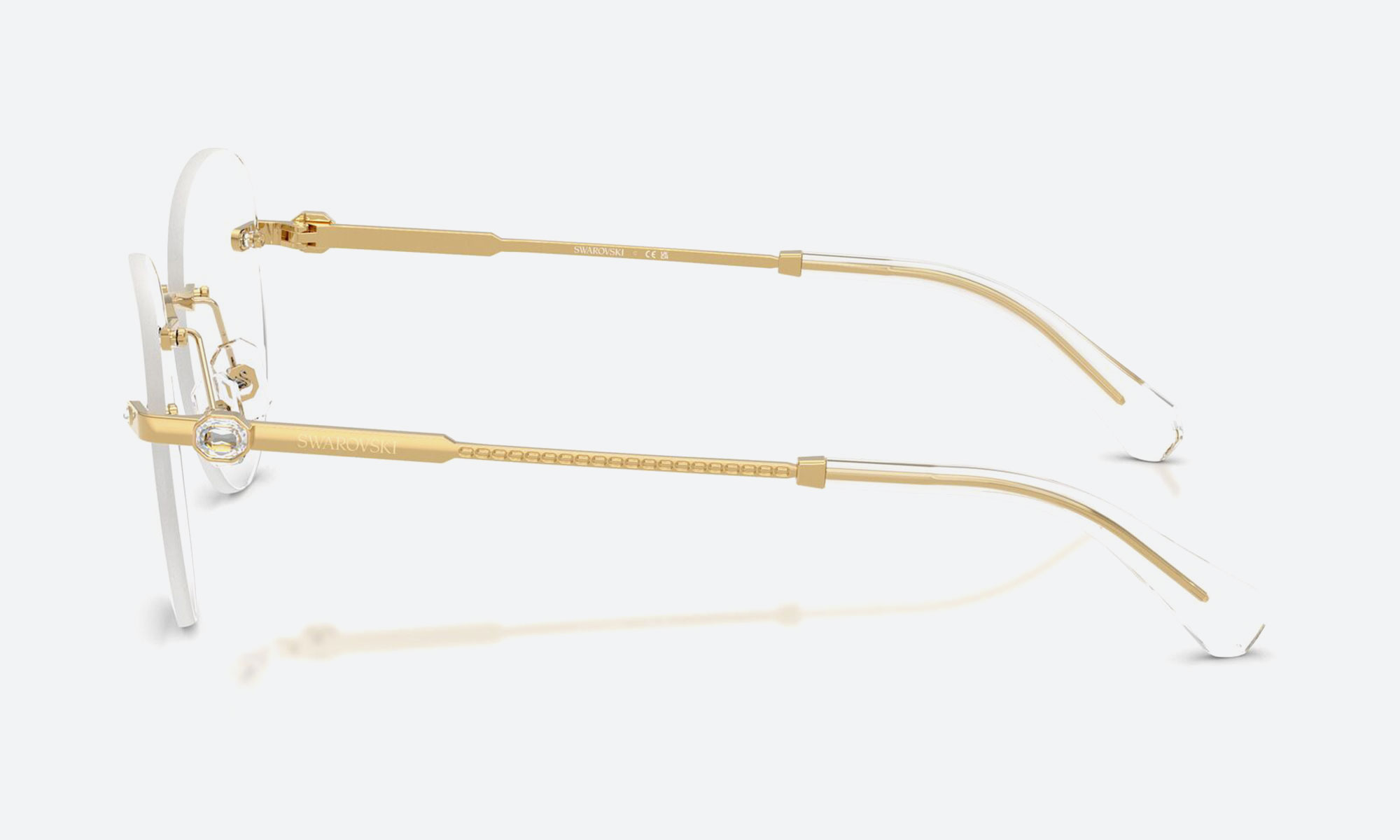 The Swarovski SK1021 4004 Gold glasses offer refined elegance. Crafted from metal with a polished gold finish, these rimless round frames combine modern sophistication with timeless luxury for the discerning woman.