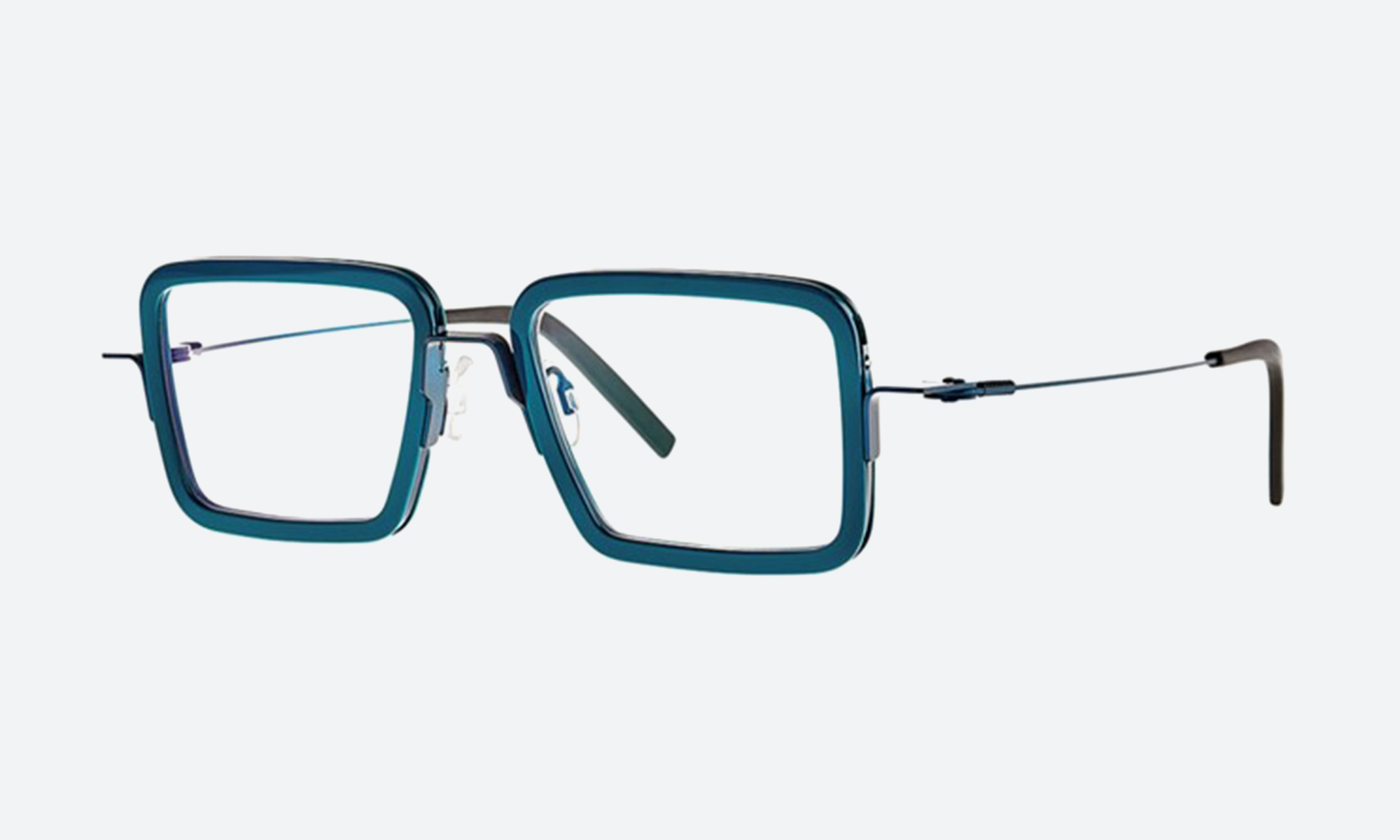 THEO MASH 044 in two-tone blue transforms the rectangular frame with titanium precision. A medium-sized full-rim design, it combines sharp lines with a rich color palette for a distinctive, modern look.